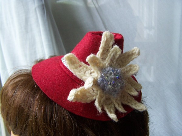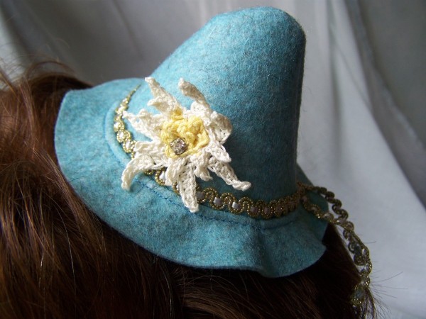 Kleine Filzhütchen (Durchmesser ca. 12 - 15 cm) werden mit Automatik-Haarspangen in der Frisur befestigt. Alles Unikate aus der eigenen Werkstatt. Lustig zur Wies´n-Zeit!