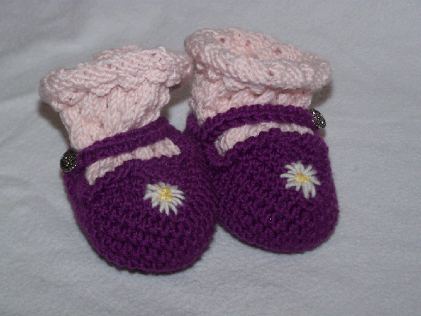 Babyschuhe aus feiner, reiner Merinowolle.Die Spange wird mit einem Trachtenknopf geschlossen.Das Edelweiß ist aufgestickt.